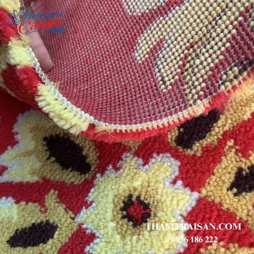 Điểm nhấn của thảm WS1621 nằm ở gam đỏ chủ đạo, kết hợp hoa văn hoa 4 cánh vàng ánh kim. Màu sắc được phối hài hòa, giúp không gian trở nên ấm áp, quyền quý và thu hút ánh nhìn – rất thích hợp cho trung tâm hội nghị, nhà hàng hoặc khu lễ tân khách sạn.