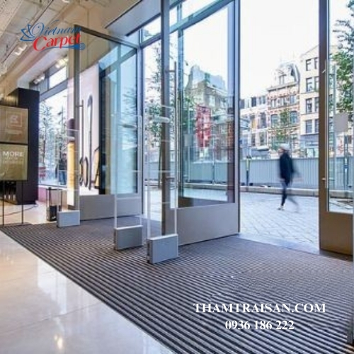 Chống trượt & tạo cảm giác an toàn: Khi mặt đất ẩm hoặc mưa nhẹ, sợi thảm tổng hợp kết hợp với rãnh khung nhôm cung cấp độ bám tốt hơn, giảm nguy cơ trượt ngã.