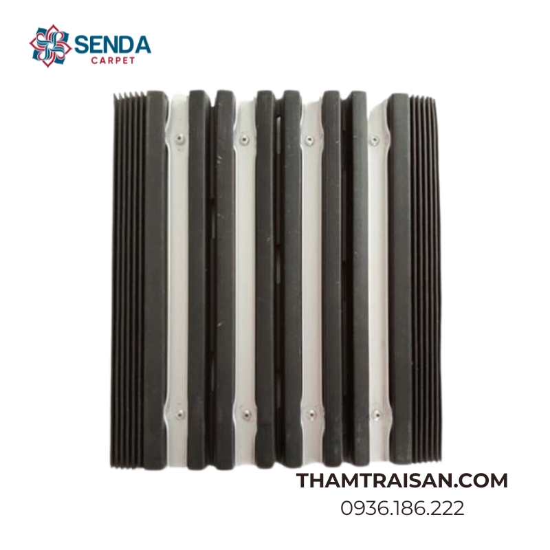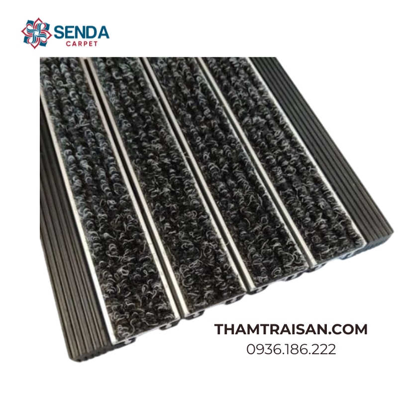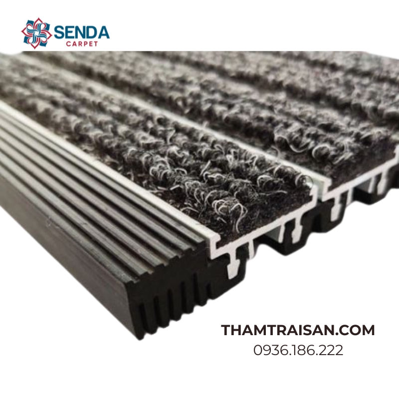 - Lớp nhôm chịu lực cao cấp: Khung thảm sử dụng hợp kim nhôm có độ bền cao, giúp chống mài mòn hiệu quả và chịu được áp lực từ lưu lượng di chuyển lớn.