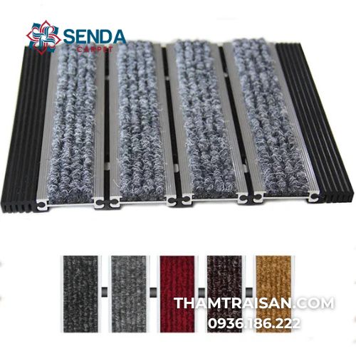 - Bề mặt kết hợp vật liệu chống trượt: Phần giữa các thanh nhôm được chèn cao su hoặc sợi thảm, giúp tăng ma sát, giữ bụi và hạn chế trơn trượt.