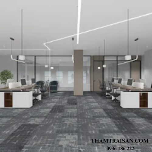 Thảm giúp không gian làm việc trở nên chuyên nghiệp, sang trọng và giảm tiếng ồn hiệu quả. Các công ty thường chọn tone xám, xanh navy hoặc đen để tạo sự hiện đại và đồng bộ thương hiệu.