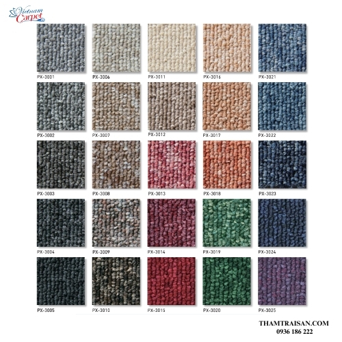 Một số mã màu tiêu biểu: PX-3001, PX-3006, PX-3011, PX-3021, PX-3019, PX-3025…