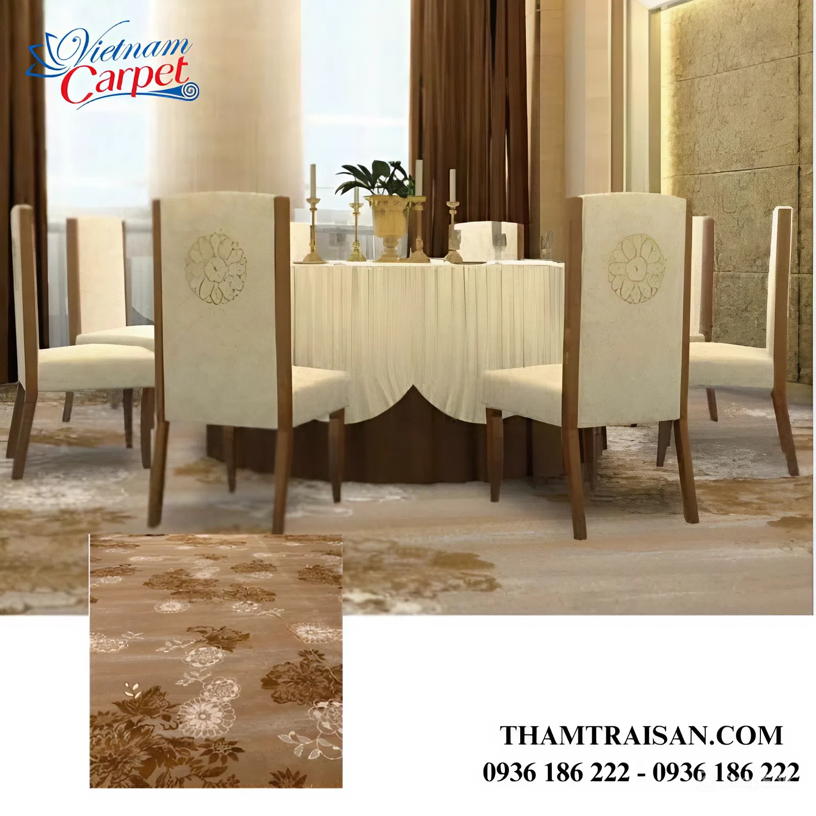 Thảm khách sạn VI002 là dòng thảm trải sàn cao cấp, được thiết kế dành riêng cho các khách sạn, resort và trung tâm hội nghị. Với chất liệu bền đẹp, hoa văn tinh tế, thảm không chỉ giúp tạo điểm nhấn sang trọng mà còn mang lại sự tiện nghi và thoải mái cho khách hàng.
