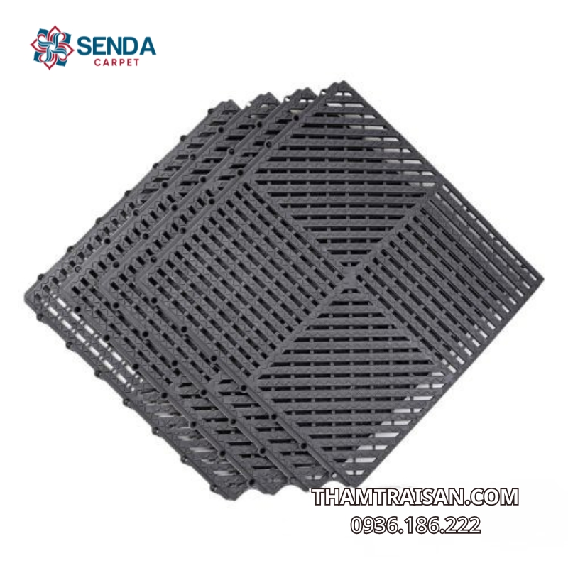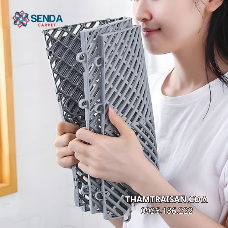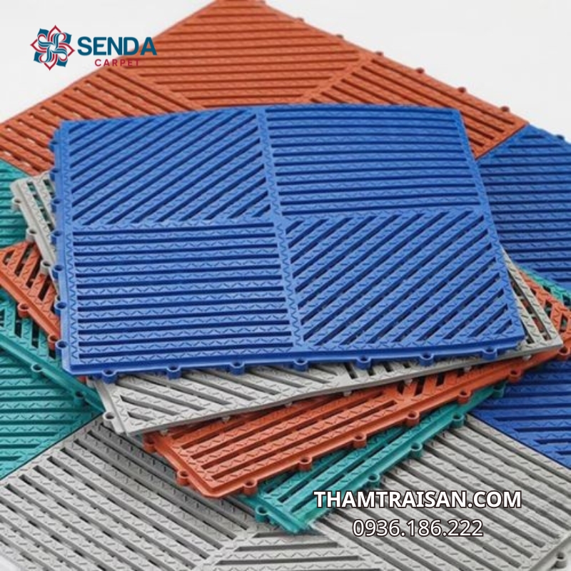 Ngoài ra, phần đế thảm hoặc hệ thống liên kết giữa các tấm được thiết kế giúp thảm bám chắc vào sàn, hạn chế tối đa tình trạng xê dịch trong quá trình sử dụng.