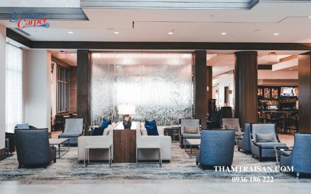 Không gian khách sạn như sảnh chính, hành lang, phòng hội nghị luôn có lưu lượng người đi lại lớn. Chính vì vậy, độ bền của thảm phải được đặt lên hàng đầu.